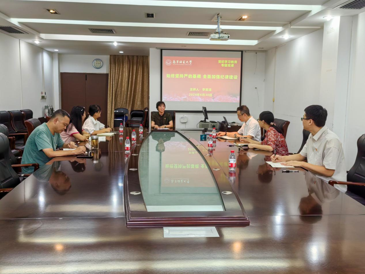 为深入学习领会习近平总书记在二十届中央纪委三次全会上的讲话精神和关于全面加强党的纪律建设的重要论述,深入推进党纪学习教育,根据学校党委党纪学习教育工作安排,6月30日上午,学校纪委书记李美清以《始终坚持严的基调 全面加强纪律建设》为题讲授纪律党课。纪委办、监察室全体党员参加学习。